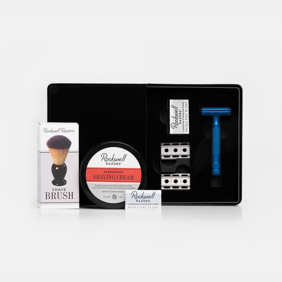 We're obsessed with transforming your shave experience into one that you'll love and look forward to. The Rockwell Shave Kit comes with our Barbershop Shave Cream, Faux-Badger Shave Brush and Recyclable Blade Safe.
