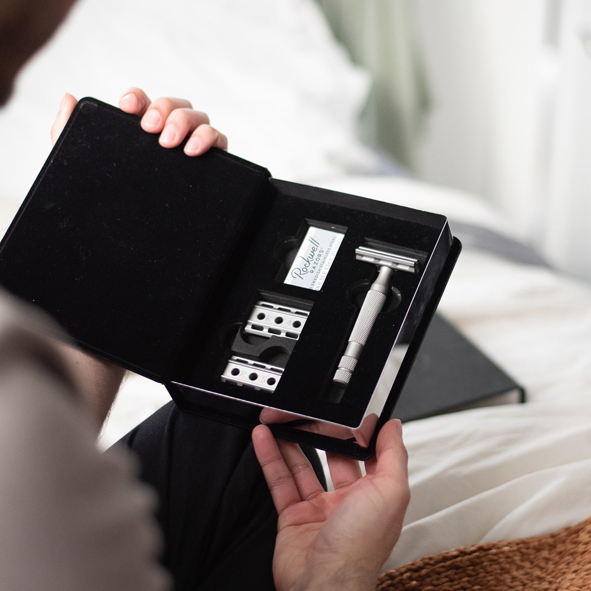 Introducing your new favorite razor. No plastic waste, zero irritation and adjustable to any skin and stubble type. Rockwell's patented design makes it easy for beginners to get all the benefits off a single blade razor, without the learning curve.